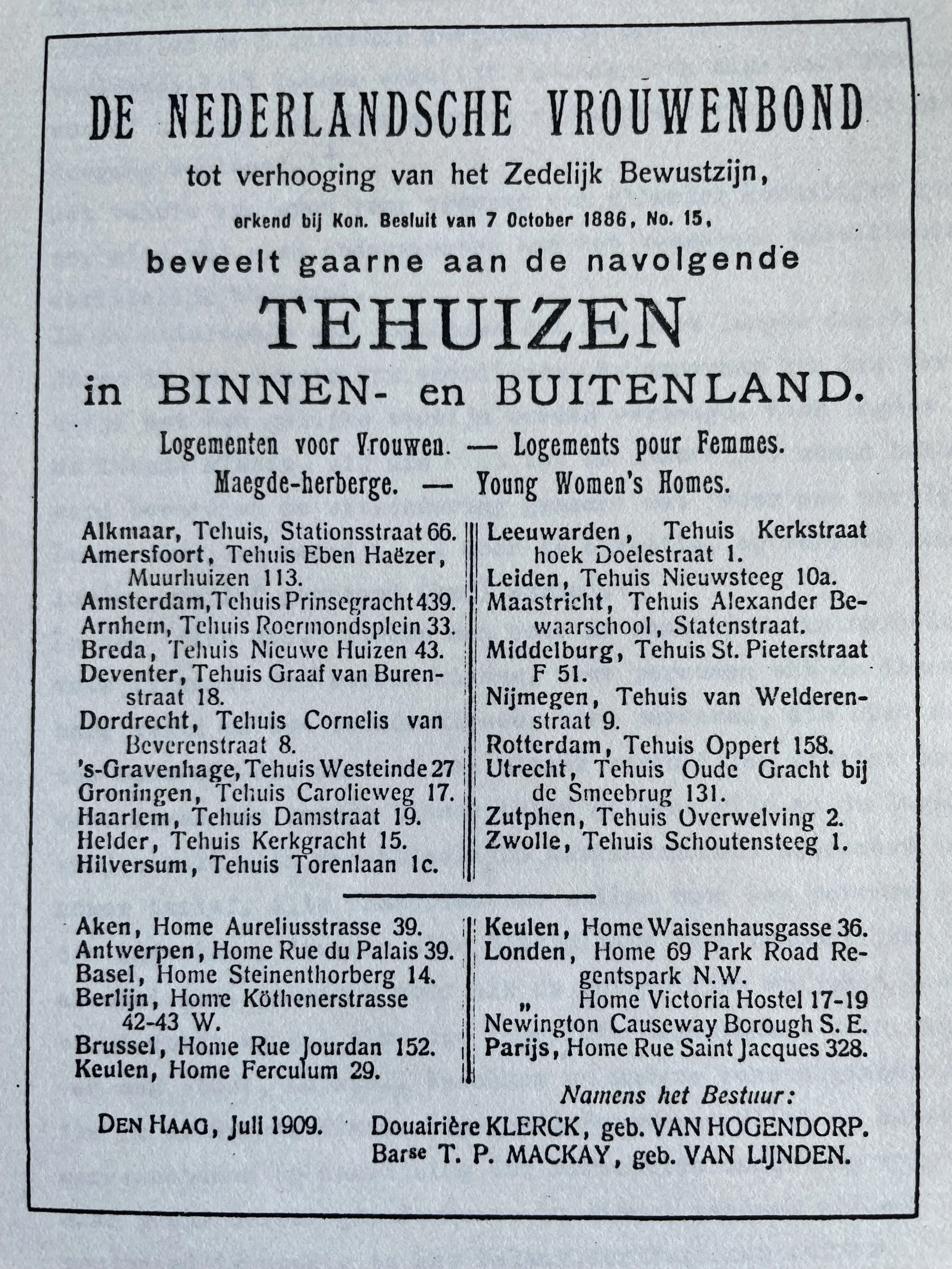 In de jaren zeventig leek de woningbouw totaal gedomineerd door de huisvesting voor gezinnen, reden voor Salomé Bentinck en Anna Vos (toen nog Annerieke Vos) om in hun afstudeerproject (1981) op zoek te gaan in de geschiedenis naar de huisvesting van alleenstaanden, aanvankelijk ook wel eenlopenden genoemd, in het bijzonder naar her story, die van alleenstaande vrouwen. Het onderzoek laat zien dat er sinds de geboorte van de volkshuisvesting midden 19de eeuw tal van onthutsende en verrassende initiatieven zijn, maar niet zonder dat daarmee specifieke categorieën vrouwen onderscheiden worden.